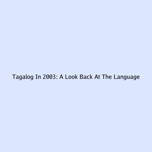 Tagalog In 2003: A Look Back At The Language