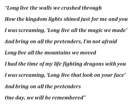 Let’s get into the nitty-gritty of the lyrics, shall we? The opening lines, “ I was so ahead of the curve / The grass was greener / The flame was so much brighter ,” set a tone of youthful ambition and boundless optimism. Taylor is looking back at a time when everything felt possible, when the future was a bright, open road. Then comes the chorus, the heart and soul of the song: “ Long live the walls we crashed through / I had the time of my life with you / Long live the moments that made us / We were the moments that made us / Long live everything we chose to be / And if you call me, I’ll be coming for you / We’ll be the kings and queens of our victory .” This is pure, unadulterated celebration. It’s about breaking through limitations, both internal and external, and reveling in the shared experience. The imagery of being “kings and queens of our victory” paints a picture of ultimate triumph and empowerment. It’s not just about winning; it’s about owning that win with the people who helped you get there. And that line, “ If you call me, I’ll be coming for you ,”? That’s the ultimate testament to loyalty and friendship. No matter what, you’ve got each other’s backs. The verses paint vivid pictures of these shared experiences: “ She stood in the northern lights / With her head in her hands / She must have been freezing / Standing in the freezing cold / And I think about her / Standing in the northern lights / I was worried she was gonna freeze .” This verse often gets interpreted in various ways, but it speaks to vulnerability and concern for a friend, even amidst grand achievements. It highlights the human element, the care and empathy that underlies these grand narratives. The song continues to build, with lines like “ And I’ve been meaning to tell you / I’ve been dreaming about you / About you and all the things we used to do ” which reinforces the nostalgic and deeply personal nature of the song. It’s about looking back with fondness and a touch of melancholy for those golden days. Taylor’s genius lies in her ability to weave these personal anecdotes and feelings into universally relatable themes of friendship, achievement, and the passage of time. It’s this lyrical depth that allows listeners to project their own experiences and cherished memories onto the song, making it a personal soundtrack to their own lives. Each word is carefully chosen to evoke emotion, paint a picture, and celebrate the enduring power of human connection and shared journeys. It’s a masterclass in songwriting, guys.