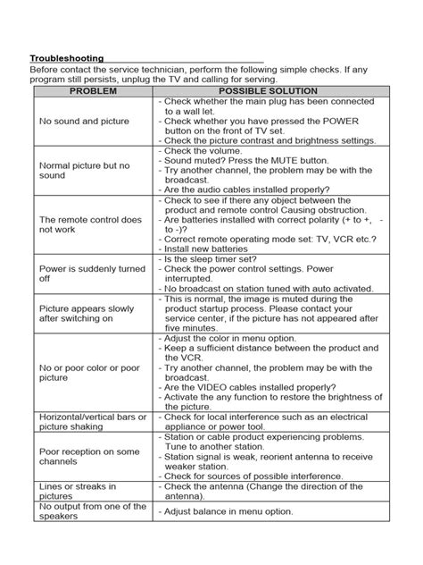 - Identify the Problem: Start by clearly defining the issue. Is it a picture problem, sound problem, power issue, or remote control problem? Write down the problem and what you see and hear.