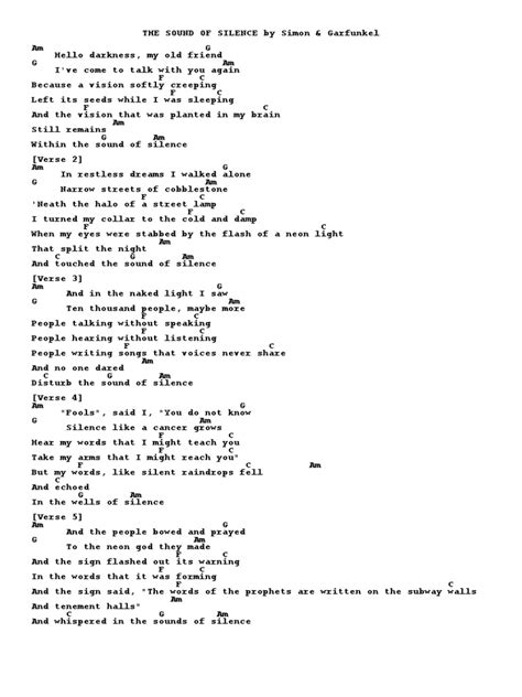 So, why does “The Sound of Silence” still hit so hard today, guys? Its enduring legacy is a testament to its universal themes. Even though it was written over half a century ago, the issues it addresses – alienation, the breakdown of communication, the allure of superficial distractions, and the struggle for authentic connection – are more relevant than ever in our hyper-connected, yet often isolating, digital age. Think about the constant barrage of information, the curated perfection of online lives, and the pressure to always be ‘on’. It’s easy to feel like you’re shouting into the void, just like the narrator in the song. The “neon god” has evolved into the glowing screens we carry in our pockets, demanding our attention and often replacing genuine face-to-face interaction. The song’s haunting melody and Simon’s evocative lyrics provide a cathartic outlet for these feelings. It acknowledges the darkness, the loneliness, and the difficulty of true communication, assuring listeners that they are not alone in feeling this way. It validates the experience of those who feel disconnected or misunderstood in a noisy world. The profound sense of unease it captures is something many people experience daily. Moreover, the song’s ambiguity allows for personal interpretation. While many see it as a critique of society, others connect with its more personal themes of introspection, loss, or existential searching. This adaptability makes it resonate across different generations and personal experiences. Its simple yet profound structure, combined with its melancholic beauty, ensures its place in the canon of great songs. “The Sound of Silence” isn’t just a song; it’s a cultural touchstone, a mirror reflecting the anxieties and aspirations of the human condition. Its continued popularity on playlists, in films, and at gatherings is proof that the message, though perhaps originally intended to critique a specific era, has transcended time to speak to the universal human yearning for understanding and genuine connection. It’s a reminder that even in the loudest moments, the most profound silences often speak volumes about where we stand as individuals and as a society.