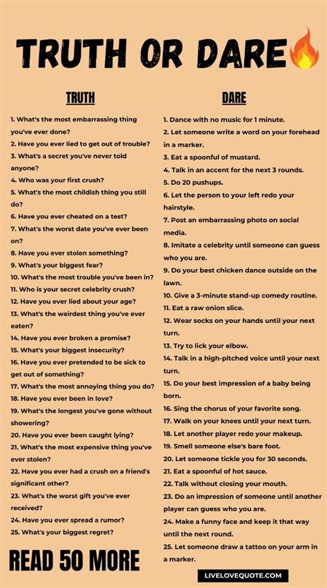 • Be creative: Don’t be afraid to come up with your own questions and dares! The more personalized the game is, the more fun it will be.