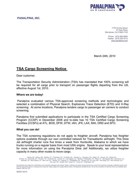 Furthermore, the TSA works with a variety of partners to share information and coordinate screening efforts. This includes other government agencies, international organizations, and the transportation industry itself. By working together, the TSA can ensure that cargo is screened consistently and effectively across all modes of transportation. It is important to have all these groups working together so they can handle all the cargo that is being moved. Without that partnership, it would be almost impossible to do.