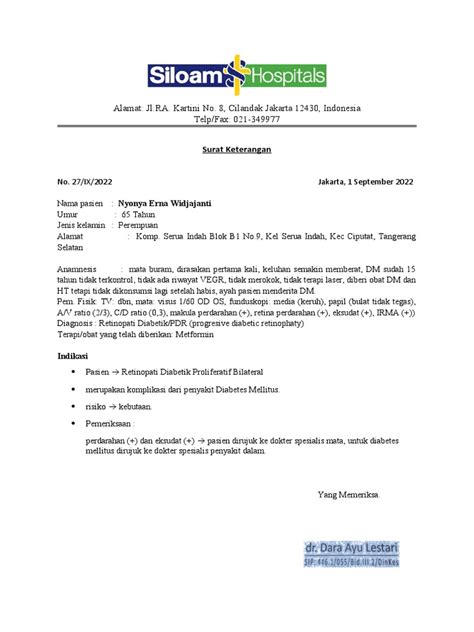 Let’s break down what you’ll typically find on a Nomor Surat Keterangan Sakit . Understanding the components is key to ensuring everything is in order. At the top, you’ll usually see the heading “Surat Keterangan Sakit” or something similar, clearly identifying the document’s purpose. Then, there’s your personal information. This includes your full name, date of birth, and sometimes your address or identification number (like your KTP number). This is how they officially identify you. Next comes the date of examination. This is the date when you visited the doctor and were assessed. Make sure this date is accurate! Following this, the document will mention the diagnosis. This is the medical condition the doctor has identified as causing your illness. The specific diagnosis will help your employer or school understand the nature of your illness. The Nomor Surat Keterangan Sakit then states the period of absence. This is the crucial part: it specifies how long you are excused from work or school. It will usually include a start and end date. Double-check these dates to ensure they align with the time you need to recover. The doctor’s details are also included. You’ll find the doctor’s name, their license number, and their contact information. This is important for verification purposes. The doctor’s signature and stamp are the final, most crucial elements. The signature confirms that the doctor has examined you, and the stamp is the official seal. Without these, the certificate is invalid. Some certificates may also have space for additional information. This might include recommendations for follow-up care or any other relevant details. It’s important to review the certificate thoroughly to ensure all details are accurate and that the dates are correct. If something is missing or incorrect, it’s best to clarify with the doctor before submitting it. Make sure you understand each element and that the certificate accurately reflects your medical condition and the period you need to be off work or school. Understanding the contents of your Nomor Surat Keterangan Sakit will help you to use it effectively and to avoid any misunderstandings with your employer or school.