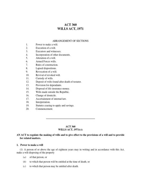 Alright, let’s break down some of the key components of the Wills Act. First up, there’s the testamentary capacity . This basically means you need to be of sound mind when you make your will. You need to understand what you’re doing and who your beneficiaries are. If someone argues you weren’t mentally competent when you signed the will, it could be challenged in court. Next, there’s the requirement for a written document . A will has to be in writing – no verbal agreements here! This is to prevent misunderstandings and ensure there’s a clear record of your intentions. The will must also be signed by you, the testator (that’s the fancy word for the person making the will), and witnessed by two people who are not beneficiaries. These witnesses need to be present when you sign and must also sign the will themselves. This whole witnessing process is crucial because it provides an extra layer of security and confirms that you actually signed the will willingly and knowingly. Another important component is the ability to revoke or amend your will . You’re not stuck with the same will forever! You can change it as many times as you like, as long as you’re still of sound mind. To amend your will, you can either create a new one or add a codicil (an addition or supplement) to the existing one. However, any changes must also be signed and witnessed in the same way as the original will. The Wills Act also covers what happens if someone challenges the validity of your will. There are specific procedures for contesting a will, and the court will consider evidence such as your mental capacity, whether you were unduly influenced, or whether the will was properly executed. Understanding these key components is essential for creating a valid and enforceable will that accurately reflects your wishes.