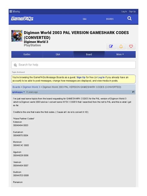 • Ensure Compatibility: Not all codes work with all versions of the game. Make sure the codes you’re using are specifically designed for the PAL version of Digimon World 3 . You can usually find this information on the website where you get your codes.