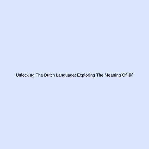 Unlocking The Dutch Language: Exploring The Meaning Of 'Ik'