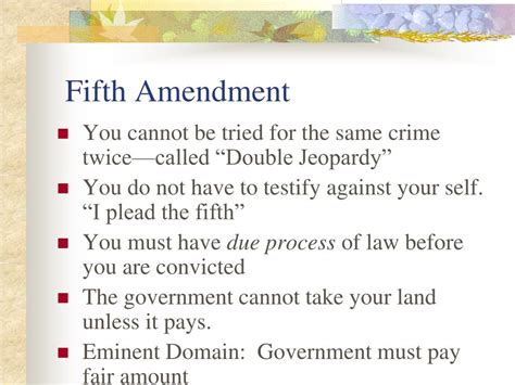 At its heart, the Fifth Amendment is all about fairness and justice . It’s designed to shield you from the government overstepping its bounds. The amendment contains several key clauses that work together to provide comprehensive protection. These include the right to a grand jury for federal criminal cases, protection against double jeopardy, the right against self-incrimination, the guarantee of due process of law, and the provision for just compensation for the taking of private property for public use. Each component plays a vital role in ensuring that the government treats individuals fairly and respects their fundamental rights. This is a big deal, and it affects everyone. It means that the rules are set so that the government can’t just come in and do whatever it wants. Instead, they need to follow the rules, treat everyone equally, and respect the rights that you have. Without these protections, people could be easily exploited or unfairly treated by the government. The concept of due process ensures that the government follows a specific set of procedures and provides the defendant with an opportunity to be heard. This ensures that the accused are treated fairly under the law and have a fair chance to defend themselves. Double jeopardy prevents someone from being tried twice for the same crime. And that right to remain silent, which you see in every cop show? That protects you from having to testify against yourself in court. It is all designed to create a system where the innocent are protected, and the guilty are treated fairly.