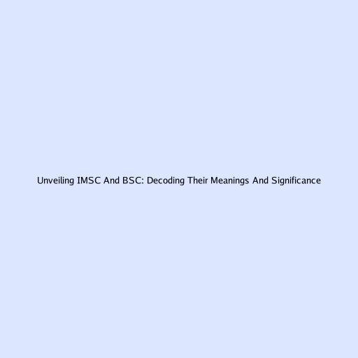 Unveiling IMSC And BSC: Decoding Their Meanings And Significance