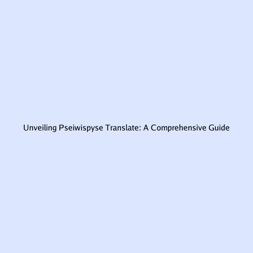 Unveiling Pseiwispyse Translate: A Comprehensive Guide