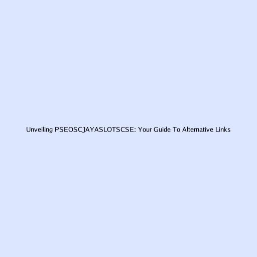 Unveiling PSEOSCJAYASLOTSCSE: Your Guide To Alternative Links