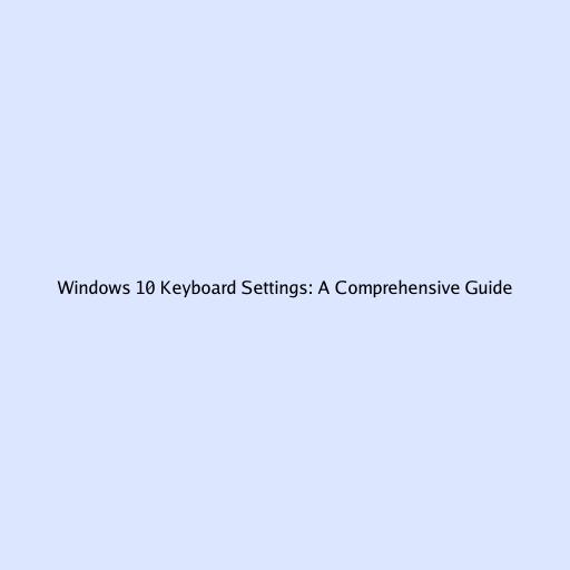 Windows 10 Keyboard Settings: A Comprehensive Guide